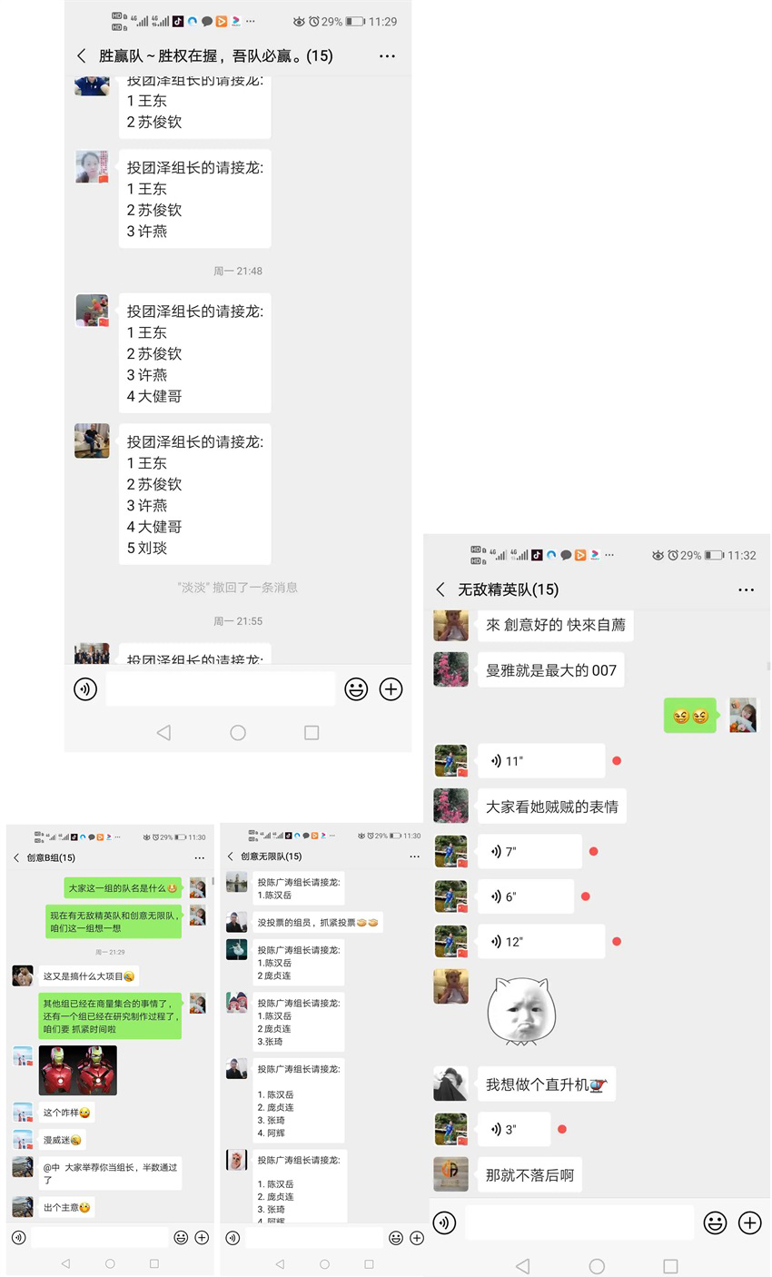部門主管敲定活動細(xì)節(jié)、安排,通過盲選的方式,分配好四組成員,當(dāng)晚建立活動微信群,推選各組組長,并展開如火如荼的線上討論,大家集體出謀劃策,尋找素材,分配任務(wù)、尋找制作視頻,迅速敲定主題,并敲定集體制作時間。
