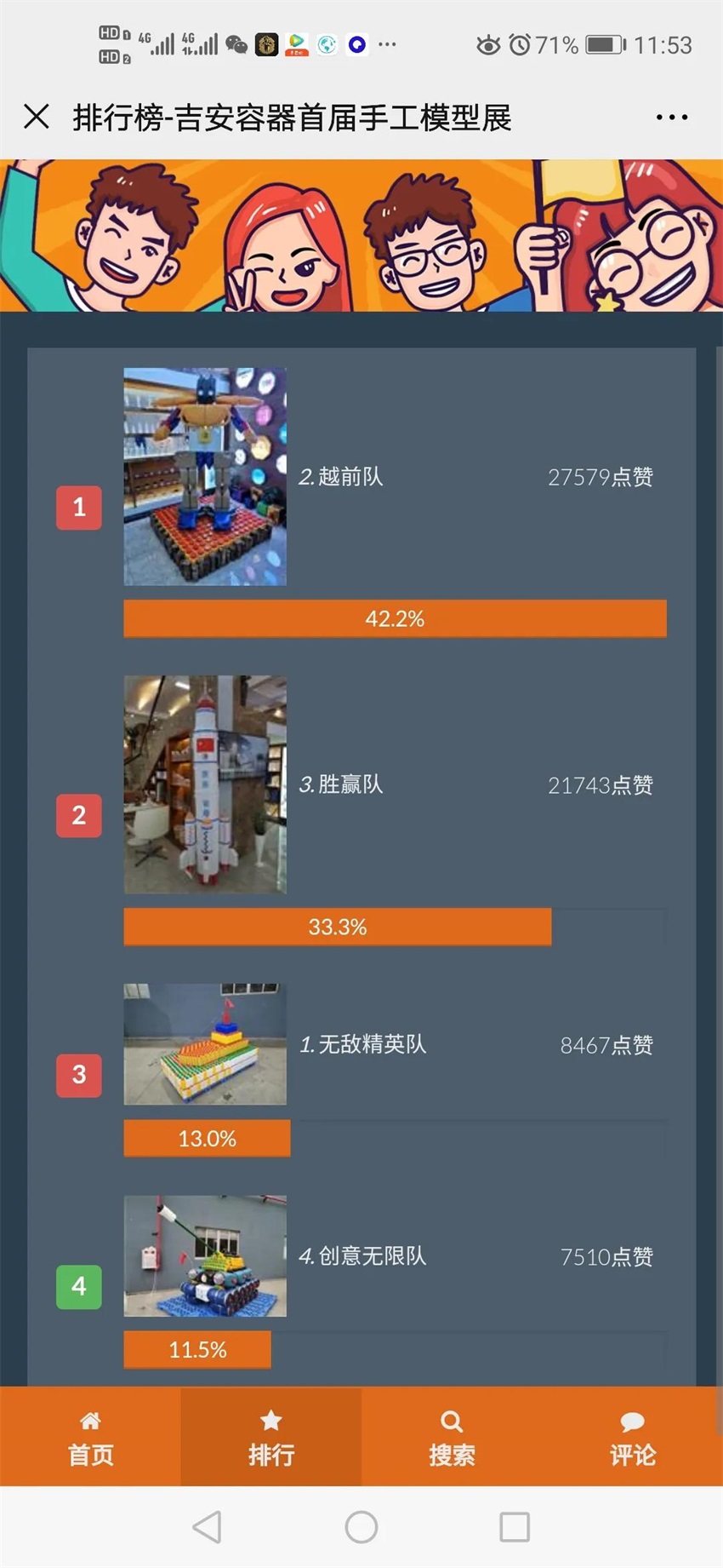 首屆創(chuàng)意手工模型大賽圓滿落下帷幕,感謝每一位支持我們的朋友們,正是因為有了您們的支持和鼓勵,使得我們整個團隊更加充滿信心,我們將繼續(xù)發(fā)揮創(chuàng)新、專研、拼搏的精神,本次活動帶給我們的刺激、興奮、驚險、也更深刻的體會到擔(dān)當(dāng)、分工、合作、協(xié)助、理解的重要性。我們的拉票行為可能會給大家?guī)砝_,給您們添麻煩了!活動的成功離不開每一位客戶朋友們對本次活動的包容及大力支持!再次感謝!我們將繼續(xù)發(fā)揚“吉安精神”,為客戶提供更高價值,為團隊奉獻更大力量!