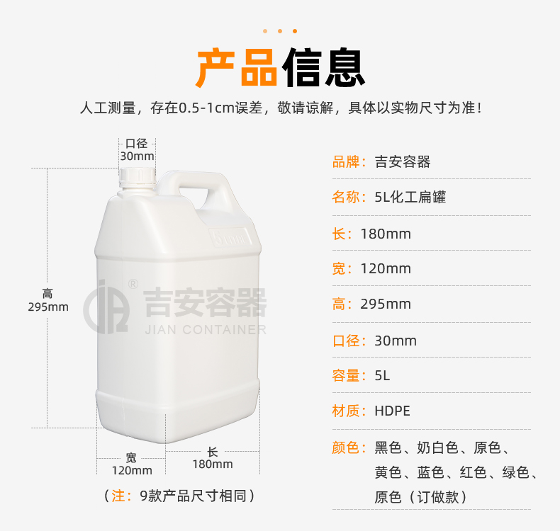 | 容量:5L | 材質(zhì):HDPE |