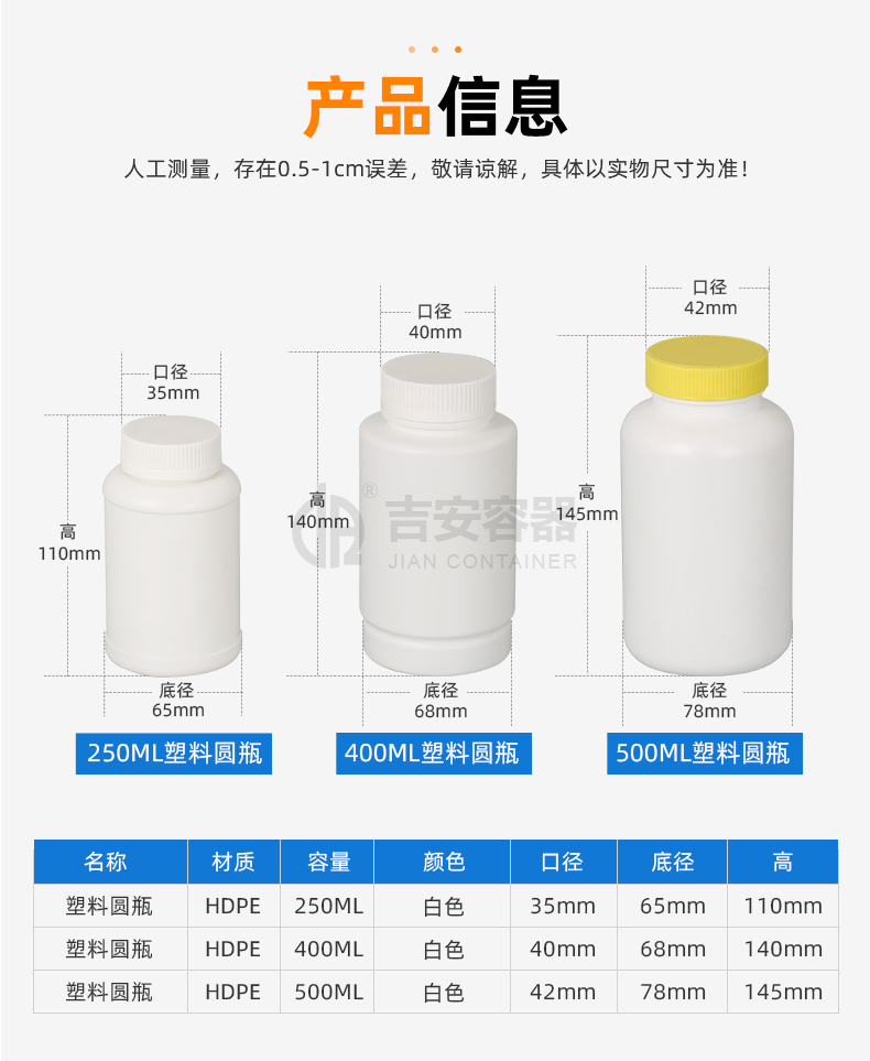 東莞市吉安包裝容器有限公司創(chuàng)立于2000年8月1日,是中國知名品牌企業(yè)。已通過ISO 9001質(zhì)量管理體系資質(zhì)認(rèn)證,加入了中國中空協(xié)會,并獲得《中國知名品牌》,《國家標(biāo)準(zhǔn)合格產(chǎn)品》,《全國重合同守信用AAA級企業(yè)》,《質(zhì)量.服務(wù).誠信AAA企業(yè)》等榮譽稱號。根據(jù)材質(zhì)的不同,我們的產(chǎn)品分為塑料容器、鐵質(zhì)容器、鋁材容器、玻璃容器、紙質(zhì)容器等五大類。按產(chǎn)品的名稱分為塑料桶、塑料瓶、包裝桶、涂料桶、機油桶、油脂桶、化工罐、膠水瓶、鐵桶、鐵罐、鋁瓶、鋁罐、阻隔瓶、高阻隔瓶等,容量從3ML至1000L多種規(guī)格,多種款式。適合包裝的產(chǎn)品包括:化學(xué)試劑、化工原料、化工助劑、飼料添加劑、油墨、油漆、樹脂農(nóng)藥、日用化學(xué)品、聚氨脂、膠粘劑,廣泛應(yīng)用于化工、建筑、食品、醫(yī)療、生物等各領(lǐng)域。
