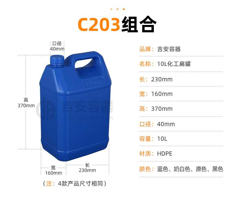 東莞市吉安包裝容器有限公司創(chuàng)立于2000年8月1日,是中國(guó)知名品牌企業(yè)。已通過(guò)ISO 9001質(zhì)量管理體系資質(zhì)認(rèn)證,加入了中國(guó)中空協(xié)會(huì),并獲得《中國(guó)知名品牌》,《國(guó)家標(biāo)準(zhǔn)合格產(chǎn)品》,《全國(guó)重合同守信用AAA級(jí)企業(yè)》,《質(zhì)量.服務(wù).誠(chéng)信AAA企業(yè)》等榮譽(yù)稱號(hào)。根據(jù)材質(zhì)的不同,我們的產(chǎn)品分為塑料容器、鐵質(zhì)容器、鋁材容器、玻璃容器、紙質(zhì)容器等五大類。按產(chǎn)品的名稱分為塑料桶、塑料瓶、包裝桶、涂料桶、機(jī)油桶、油脂桶、化工罐、膠水瓶、鐵桶、鐵罐、鋁瓶、鋁罐、阻隔瓶、高阻隔瓶等,容量從3ML至1000L多種規(guī)格,多種款式。適合包裝的產(chǎn)品包括:化學(xué)試劑、化工原料、化工助劑、飼料添加劑、油墨、油漆、樹脂農(nóng)藥、日用化學(xué)品、聚氨脂、膠粘劑,廣泛應(yīng)用于化工、建筑、食品、醫(yī)療、生物等各領(lǐng)域。